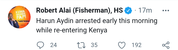 Robert alai, a fierce government critic, called president uhuru kenyatta an adolescent president.